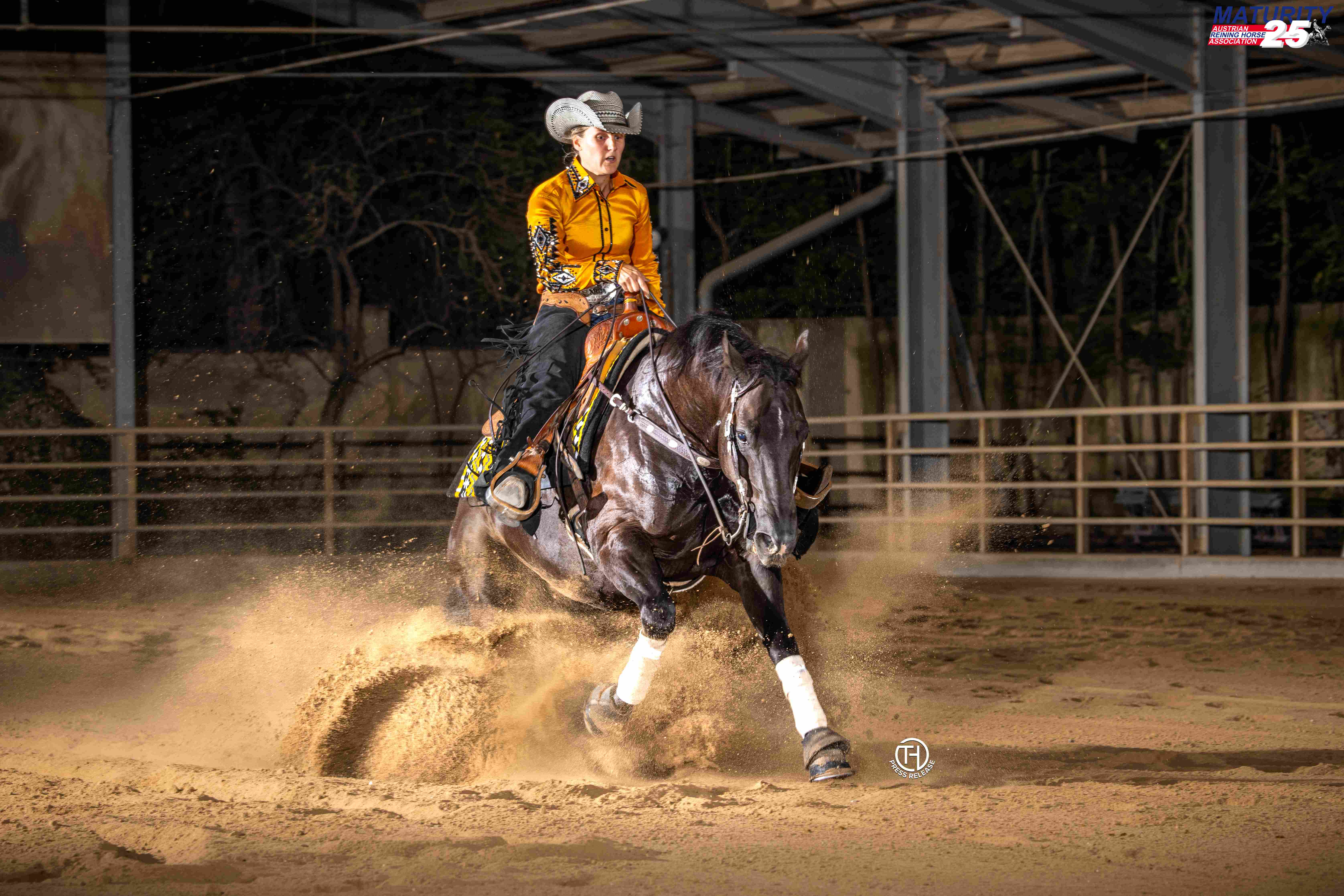 Austrian Reining Maturity Champion Non Pro L4 und L3 wurden Jasmin Semmelmeyer und ihr CB Steppin Whiz (Steppin On Sparks x Genius Candy Whiz). Mit einer 145 setzten sich die beiden an die Spitze eines starken 24-köpfigen Starterfeldes. Die beiden waren bereits 2024 Austrian Maturity Non Pro L2 und L1 Co-Champion. Co-Reserve Champions L4 und L3 wurden mit jeweils einer 143,5 Rudolf Maurer mit Gundalf (Dun It Gotta Gun x Wimpysliljoker) und Florian Kainz mit Show Surprise Step (My Showbiz Whiz x Wimpys Surprise Chex). Auf Platz 4 in der L4 kam mit einer 142,5 Dr Daniela Ratschew mit Miss Frozenspook (by Spat Split And White). In der L3 ging der vierte Platz an Miss Frozenspook mit CSG Dream Cocaine (Colonels Shining Gun x Dream N Nicki) - der Score: 143.