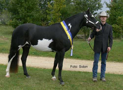 die black overo Stute Wrapped in Black, eine 1986 geborene Enkelin