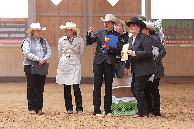 Nach der Prüfung ging die Richterin Birgit Bayer mit dem Mikrofon in die Arena und verkündete den Zuschauern; "Wir haben in dieser Prüfung leider keine Platzierten, 3 Teilnehmer haben sich verritten und der 4te hat die
