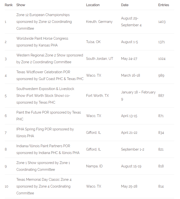 Paint Horse-Turnier der Welt nach der APHA World Show.
