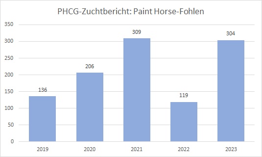 Im Zuchtjahr 2023 führte der Paint Horse Club Germany e.V. 15 Fohlenschauen und sechs Hoftermine durch, auf denen 119 Fohlen bewertet werden wurden.