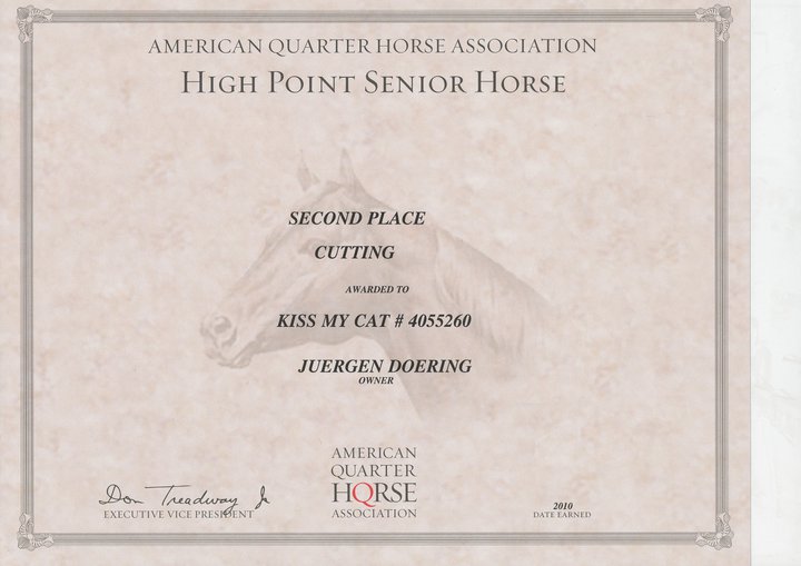 - AQHA Year End High Point Horse 3.Platz Reining Open